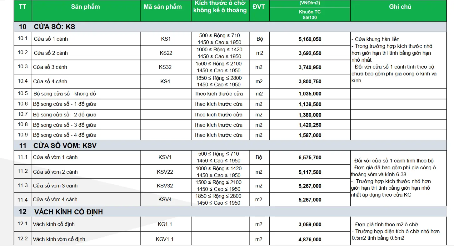| Cửa sổ thép vân gỗ 1 cánh | KS1 | 5.160.000 |