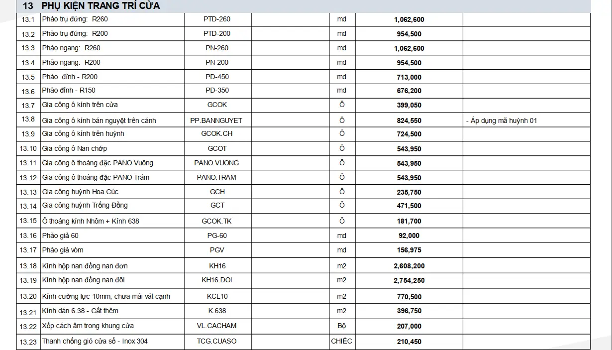 | Phào trụ ngang R200 | 2.700 | 1 | 2.579.000 |