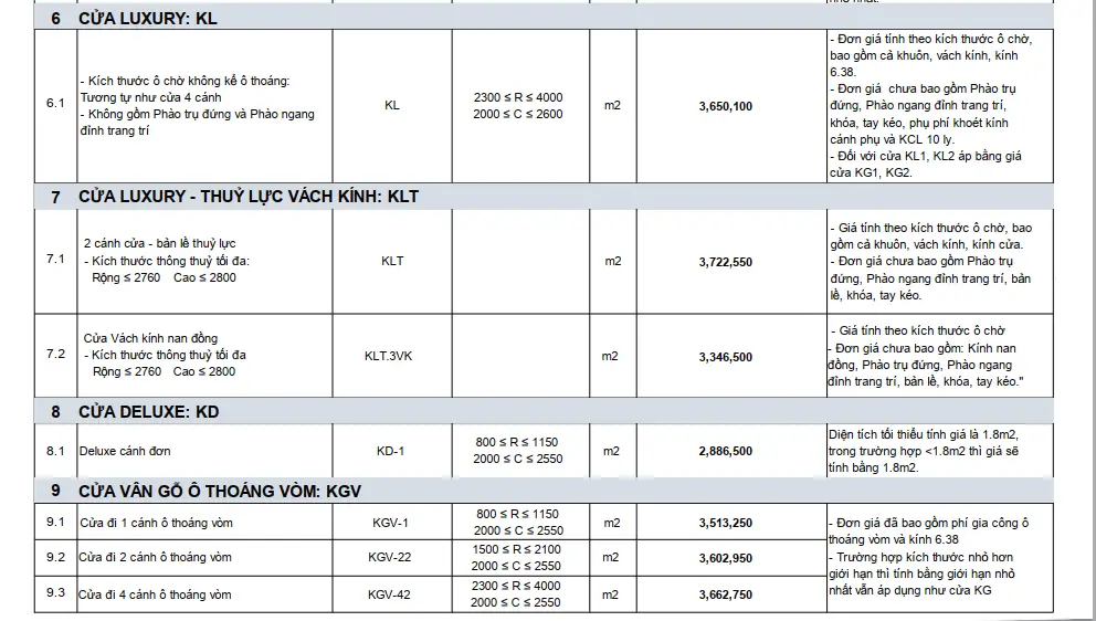 | Cửa thép vân gỗ Luxury | 2300 x 2550 | 1 | 21.408.000 |
