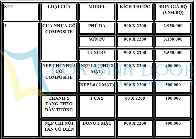 III. Bảng giá cửa nhựa Composite tại Thủ Đức: