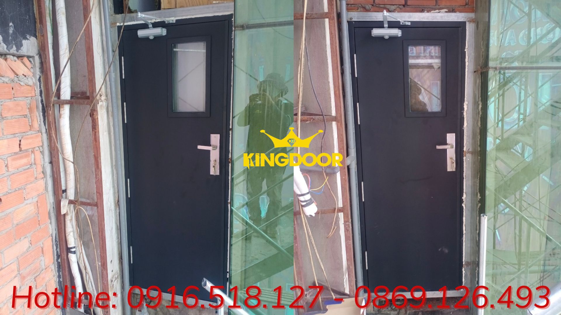 Cuối cùng, cửa thép chống cháy được lắp đặt vào vị trí cuối cùng trong tòa nhà, đảm bảo khít kín và an toàn.