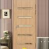 - Lớp giữa có gỗ PVC giãn nở được ép xung quanh cánh để tạo độ vững chắc và bắt khoá. Tiếp theo là LVL gỗ cứng được sếp thành nhiều lớp nhằm hạn chế tối đa việc giãn nở và cong vênh. Cuối cùng là Honey-Comb được gia cố ở giữa nhằm tối đa việc cách nhiệt và cách âm. Các lớp trên được liên kết với nhau bằng loại keo đặc biệt và được ép bằng máy ép thuỷ lực 7 tấn trong thời gian 10h, tạo ra cánh cửa dày 39mm, chắc chắn, không cong vênh…